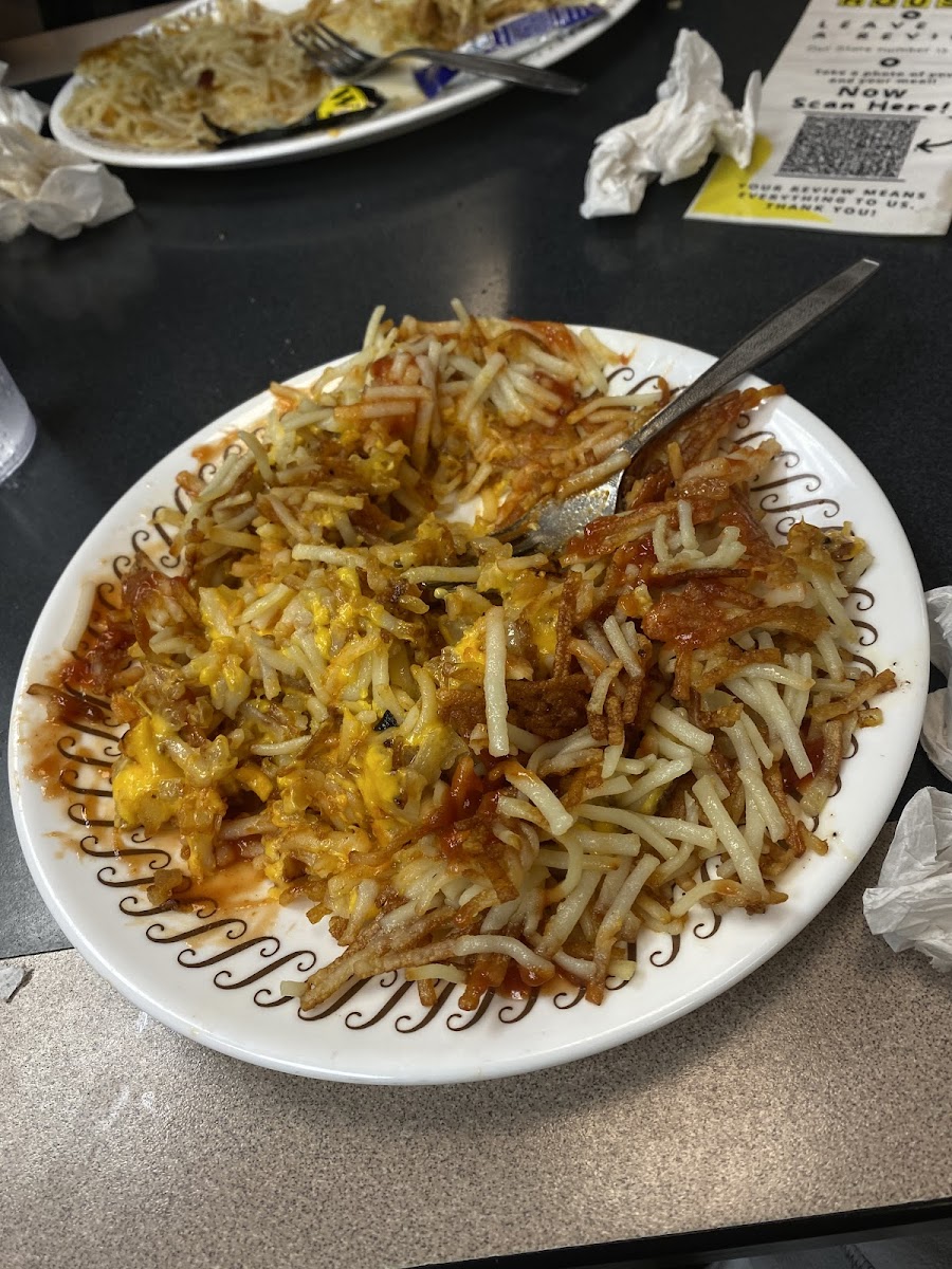 I am a hash brown lover, i prefer my hash browns to be crispy on the outside and ofc smothered & covered (sautéed onions & cheese) the chef (i forgot his name) he did a great job. the server tended to me and my friend .. overall good service & great food !